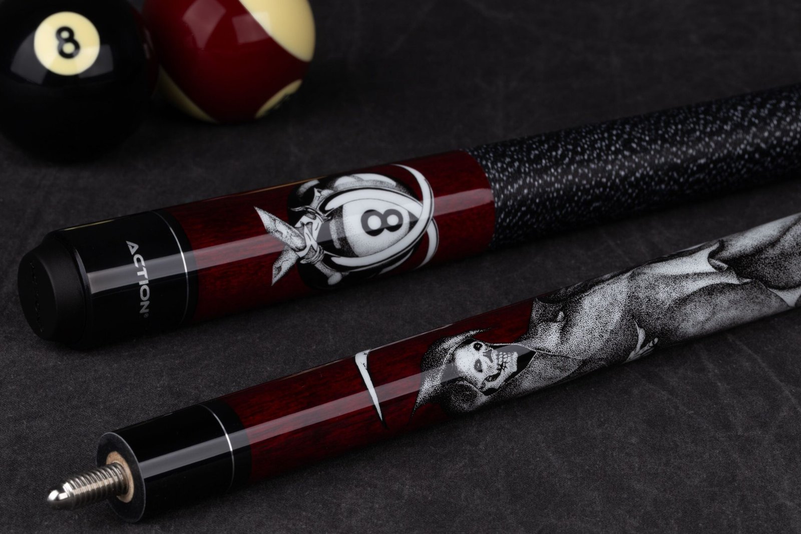 Butt Sleeve : Burgundy stained Birdseye maple with 8 ball and sickle transfer and single silver ring