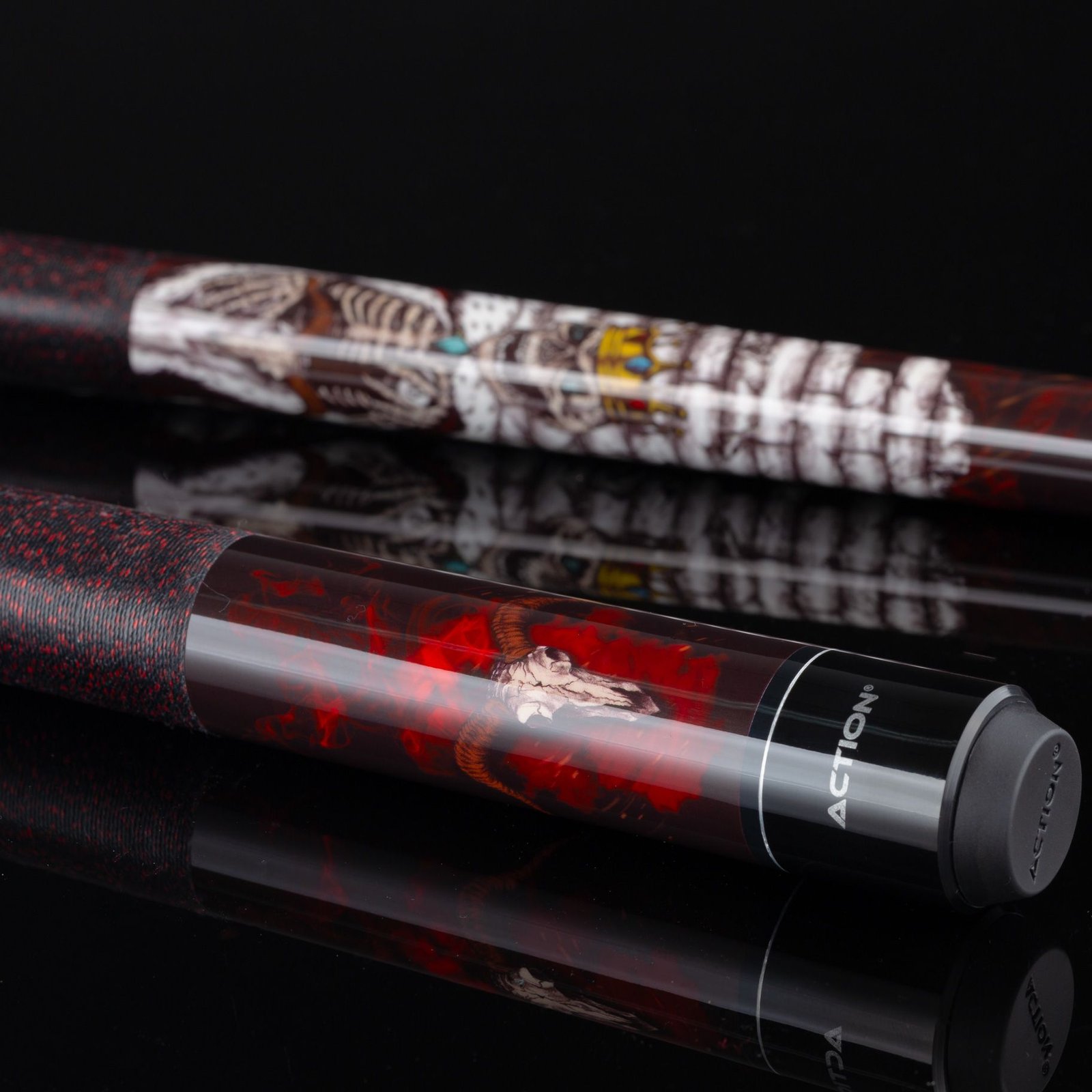 Action Adventure ADV121 Skeleton King Cue – Skull & Red Smoke Design