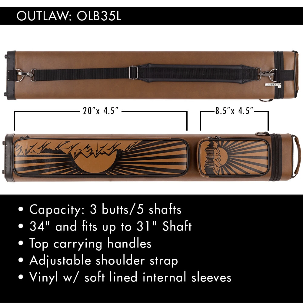This case from the Outlaw OLB35L line is built to carry up to three butts and five shafts, giving you plenty of space for your main cues and backups. It’s made of vinyl and shaped in a hard-case style, so it stands up to the bumps and travel without collapsing on you.